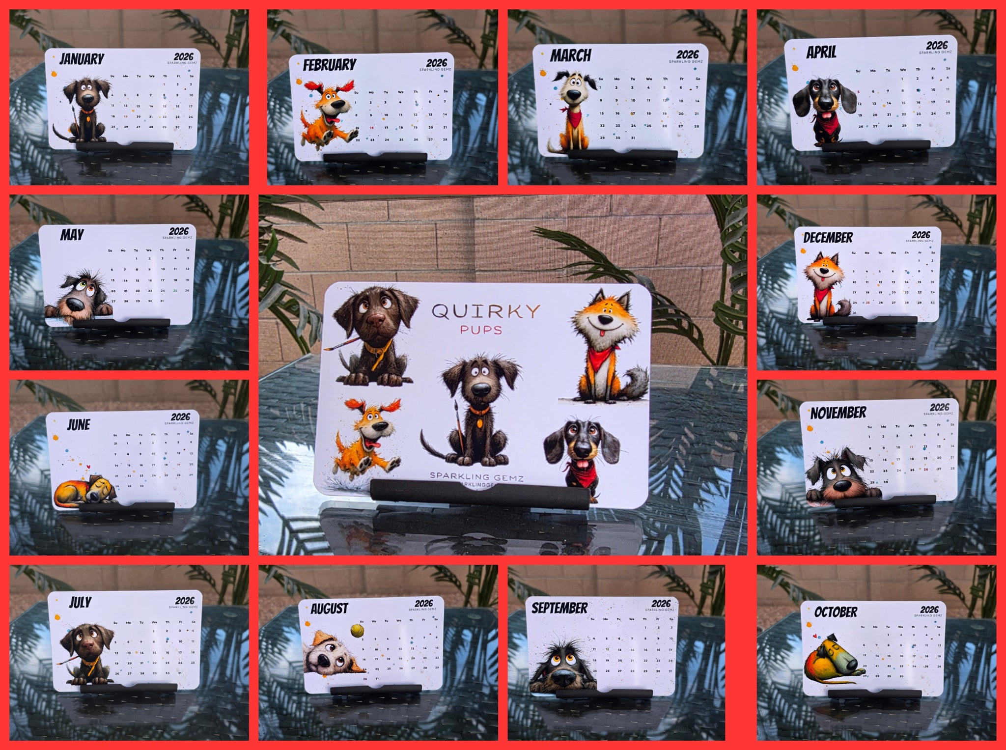 "Quirky Pups" Handmade Desk Calendar