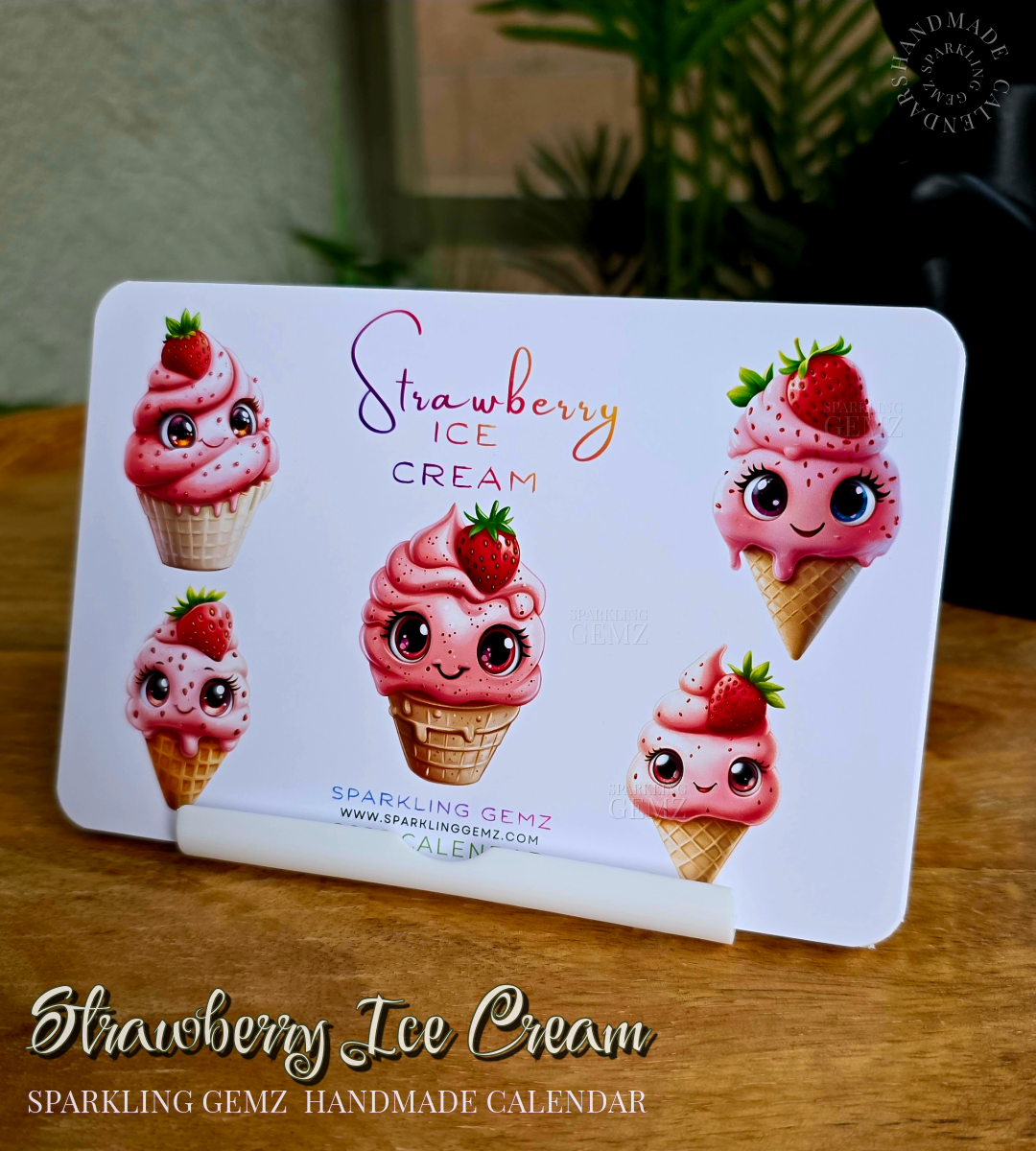"Strawberry Ice Cream" Handmade Desk Calendar